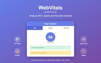 Wtyczka oferuje analizę tytułów stron, opisów, struktury nagłówków, tekstu alternatywnego, adresów kanonicznych, rozmiaru DOM, ładowania skryptów oraz użycia HTTPS. Wszystkie testy są przeprowadzane offline, a użytkownicy otrzymują wynik w czasie rzeczywistym oraz praktyczne rekomendacje. WebVitals jest dostępny za darmo, co czyni go idealnym narzędziem dla programistów, specjalistów SEO oraz właścicieli stron, którzy dążą do optymalizacji swojej obecności w sieci.